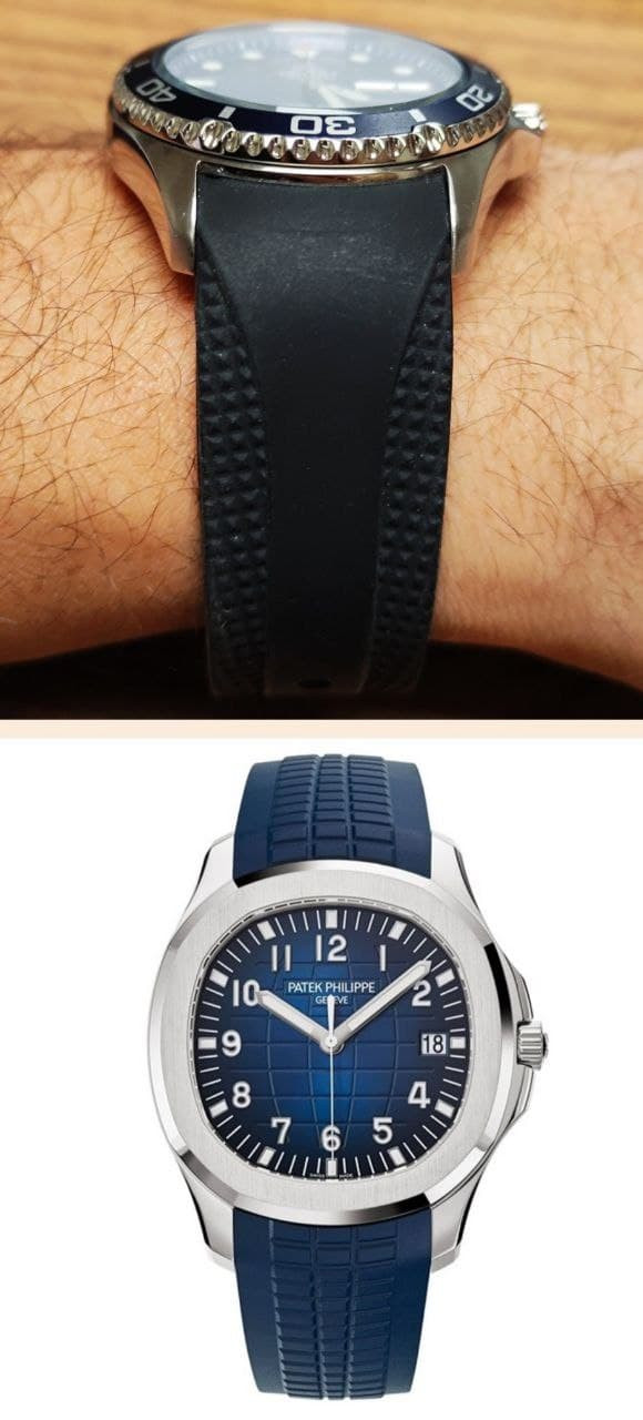 Il cinturino in gomma invece è la scelta più apprezzata da chi utilizza orologi a contatto con l’acqua ma non può o non vuole indossare un bracciale – vedi meglio infra su quest’ultimo -. Vi sono molti tipi di cinturino in gomma, che equipaggiano svariate categorie di orologi: i più diffusi sono quelli di categoria economica destinati ai diver, ma non mancano le ricercatezze come il cinturino in gomma del Patek Philippe Aquanaut coordinato con il motivo geometrico del quadrante.