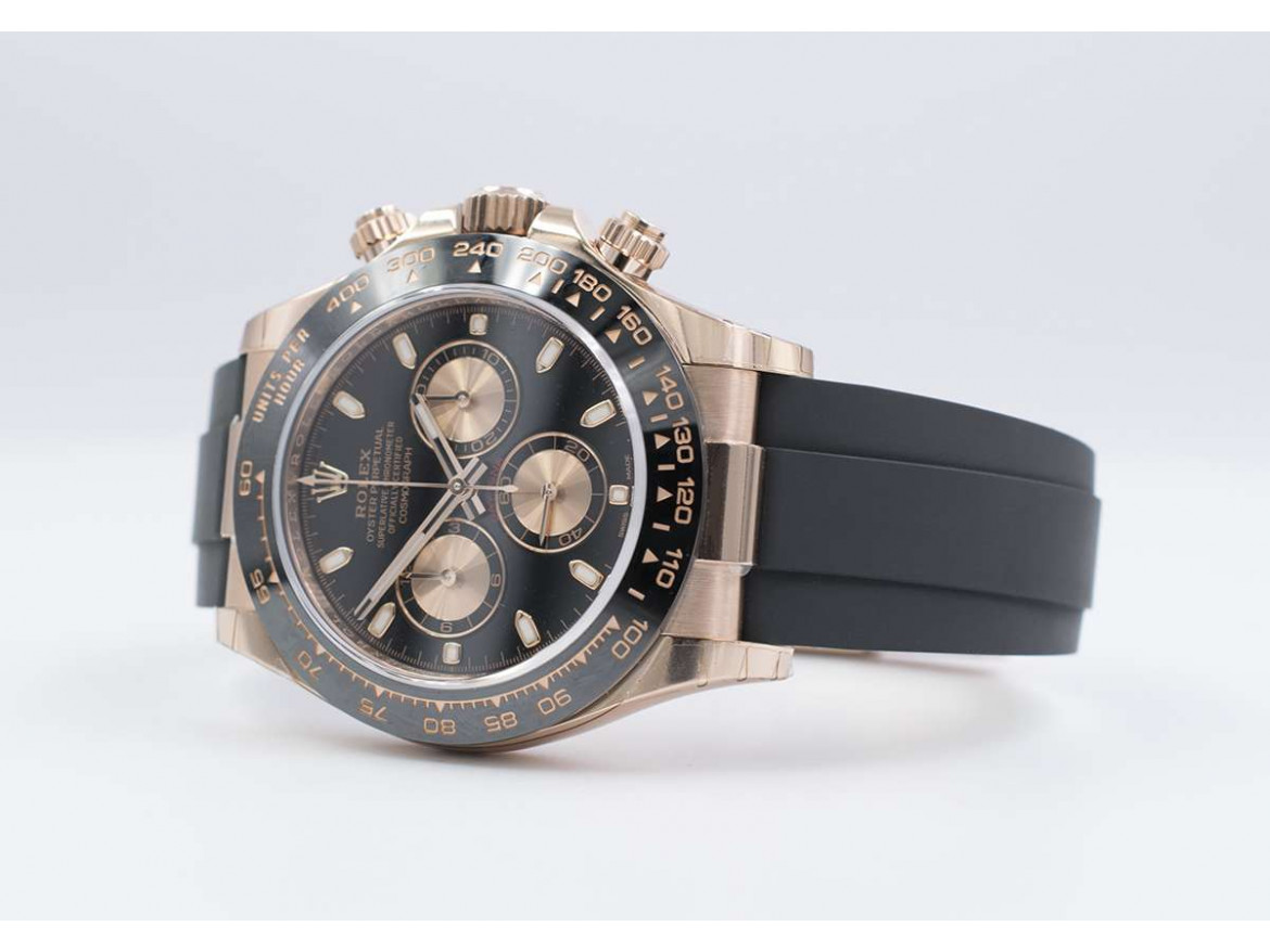 Dobbiamo inoltre menzionare un oggetto che spesso confonde chi parla di bracciali o di cinturini. Si tratta del Rolex Oysterflex, un bracciale che viene montato su alcuni orologi della Casa della Corona. Nonostante il suo aspetto esteriore possa portare a confonderlo con un cinturino, si tratta in realtà di un bracciale con anima metallica dotato di rivestimento in gomma. La scelta della designazione di “bracciale” è appunto dovuta alla presenza di questo nucleo metallico che percorre l’intero oggetto, fornendo di fatto il supporto necessario alla tenuta dell’insieme.