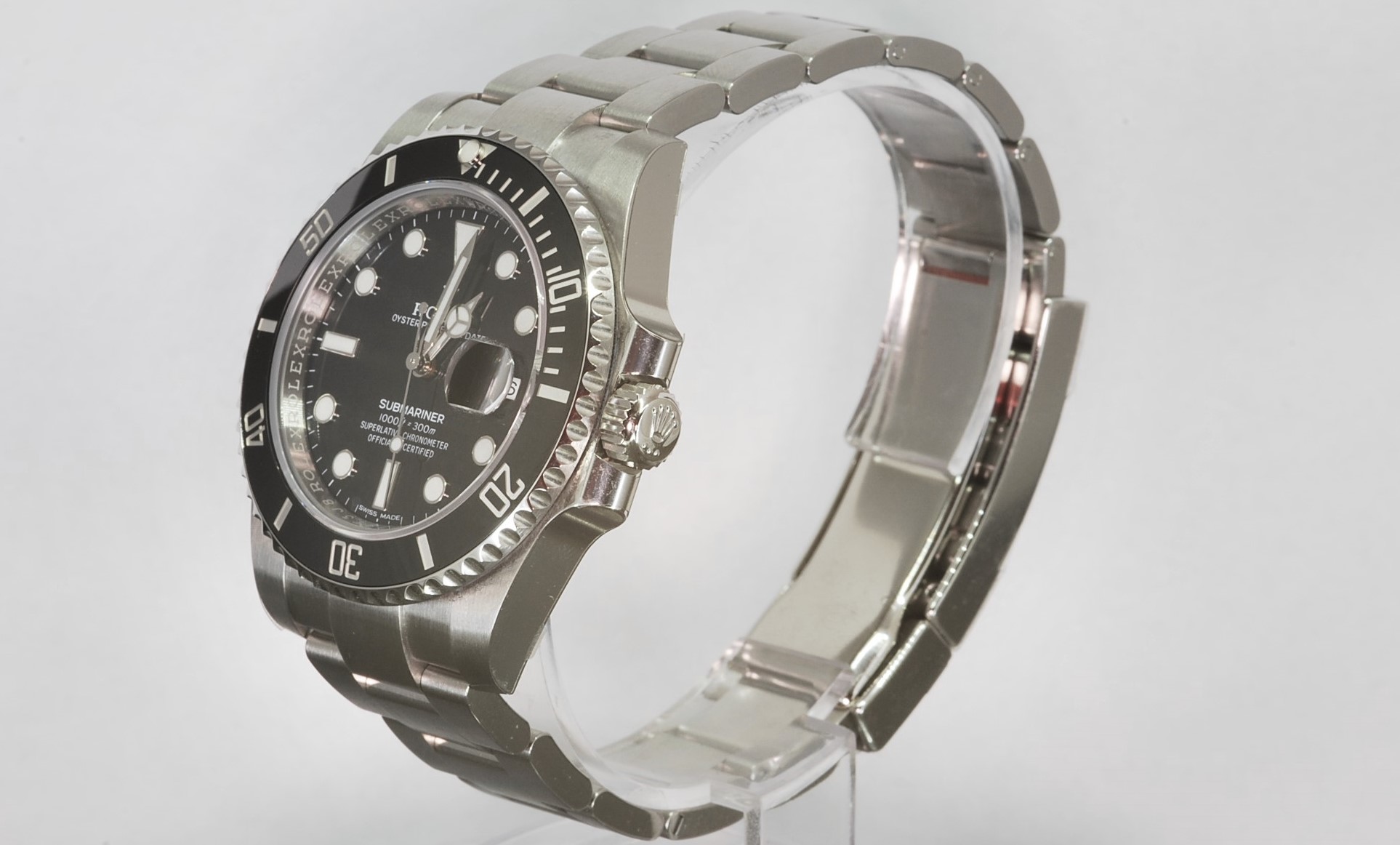 Il Rolex Submariner 116610 è un netto stacco con il mondo dei Submariner, per gli standard di Rolex. Si tratta di un segnatempo molto più massiccio, con una presenza al polso più marcata dei predecessori. Le anse dritte e spesse, il bracciale massiccio, la ghiera in ceramica lucente, le spallette di protezione della corona ingrandite, tutto contribuisce a dare una sensazione di robustezza. Rispetto al “cinque cifre”, il Rolex Submariner “ceramica” è un orologio più vistoso: tenetelo in considerazione, se non amate farvi notare.