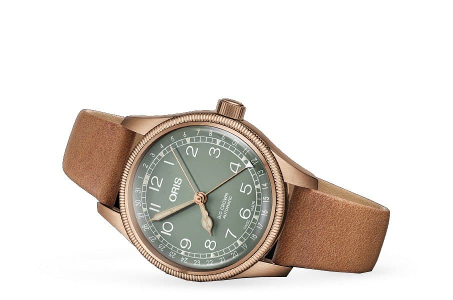 Questo Oris è un orologio abbastanza inconsueto. Il nome, Big Crown, deriva dall’omonimo modello Oris del 1938, dotato di corona di carica sovradimensionata per essere utilizzabile anche dai piloti d’aereo con le mani coperte dai guanti. L’altra parte del nome di questo Oris, Pointer Date, deriva dalla complicazione del datario attuata grazie a una sfera centrale apposita, che va a “puntare” sul perimetro esterno del quadrante il giorno del mese, senza interrompere la continuità grafica con ingombranti finestrelle del datario. Lo stile militare è la cifra stilistica anche dell’attuale Oris Big Crown, che con i suoi indici arabi, le sue sfere grandi e ben leggibili e un indossabilissimo diametro di 40 mm si presenta come un indossabilissimo orologio per tutti i giorni.